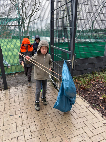 Die Kinder der Klassen 2a und 2b reinigten die Schulhofflächen, den Soccercourt und umliegendes Gelände und sammelten alles ein, was nicht auf die Straße oder in die Natur gehörte.