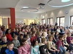 Anschließend bedankte sich Frau Kemper mit einem kleinen Präsent bei dem Nikolaus, bevor die Kinder ihn mit dem Lied "Lasst uns froh und munter sein" wieder aus der Aula hinaus begleiteten.