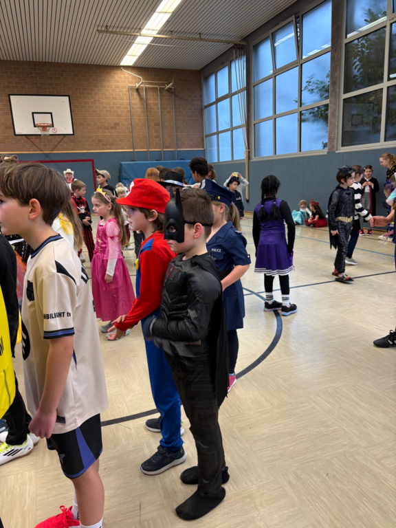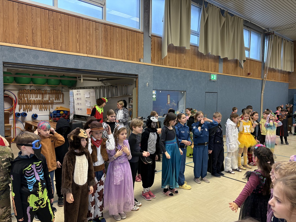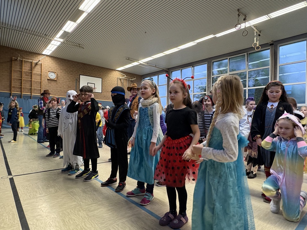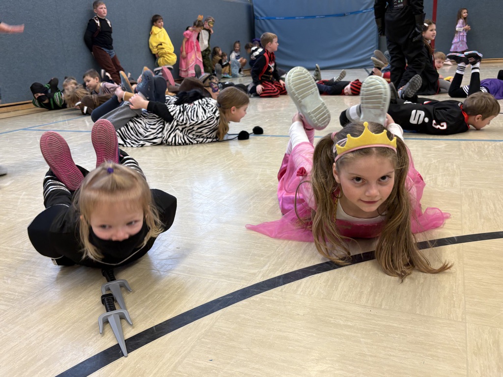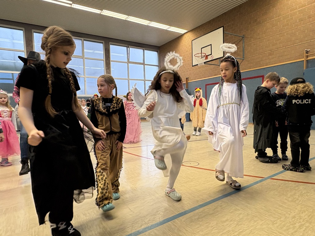 Nach der ersten großen Stärkung ging es in der Pause an die frische Luft auf den Schulhof. Anschließend verbrachten die Kinder die restliche Zeit wieder in ihren Klassengemeinschaften. Es wurde gespielt, gerätselt und viel gelacht. Ein beliebtes Spiel war das Erraten, welche Kostüme im Laufe des Tages getauscht worden waren.
