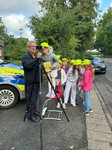 Die Schülerinnen und Schüler durften Autofahrerinnen und Autofahrer anhalten und deren Geschwindigkeit kontrollieren.