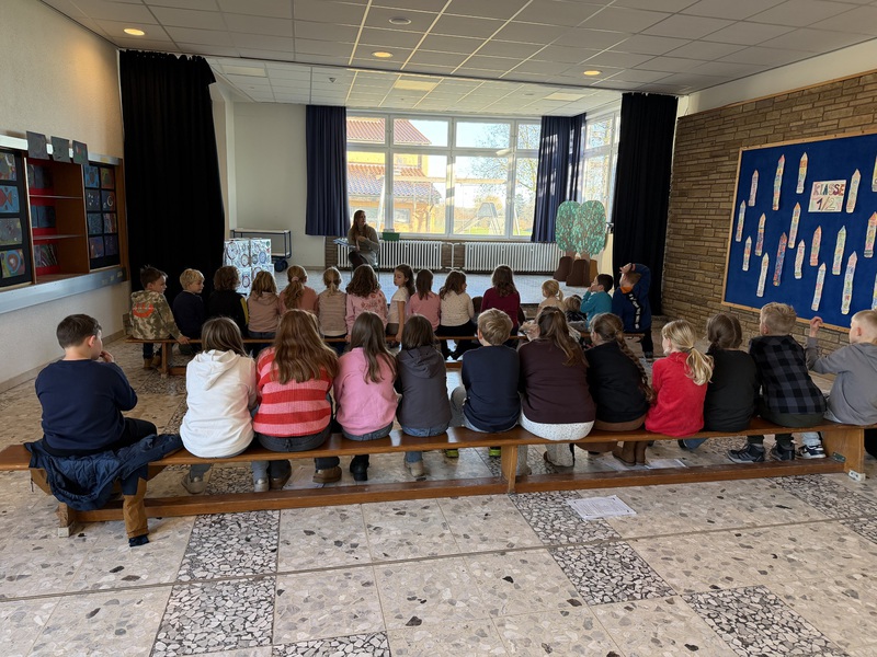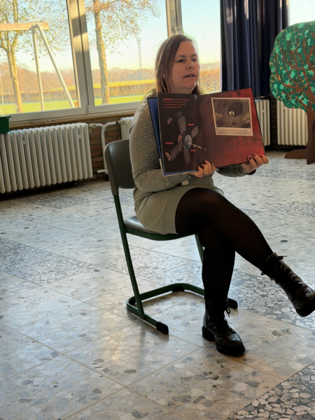 Alle Kinder versammelten sich in der Aula und Frau Schröer-Thomann las ein spannendes Buch zum Thema Weltraum vor. Die Kinder erfuhren viel über den Weltraum, unsere Planeten, Raumstationen und Astronauten.