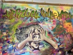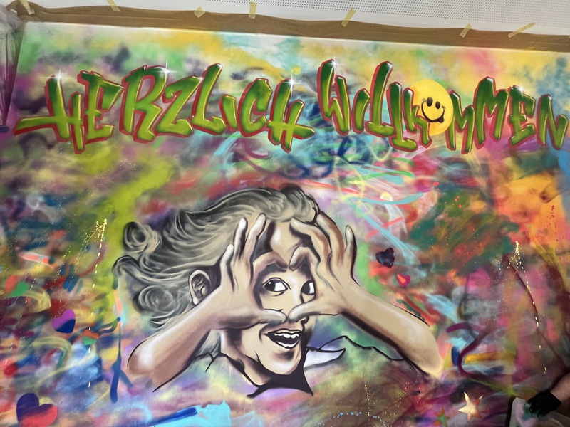 Schon früh entstand in der Schule der Gedanke eines bunten Graffitis im Eingangsbereich. Ein Graffiti, welches deutlich macht, dass alle herzlich willkommen sind. Erste Kontakte zur Jugendkunstschule waren geknüpft und der Förderverein hatte bereits finanzielle Unterstützung zugesagt, doch dann kam alles ganz anders.