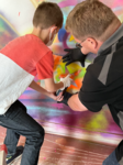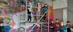 Schnell entstand die Idee, die Viertklässler könnten mit Herrn Kappel die Wand in der Eingangshalle verschönern und sich so zum Abschied in der Schule verewigen.